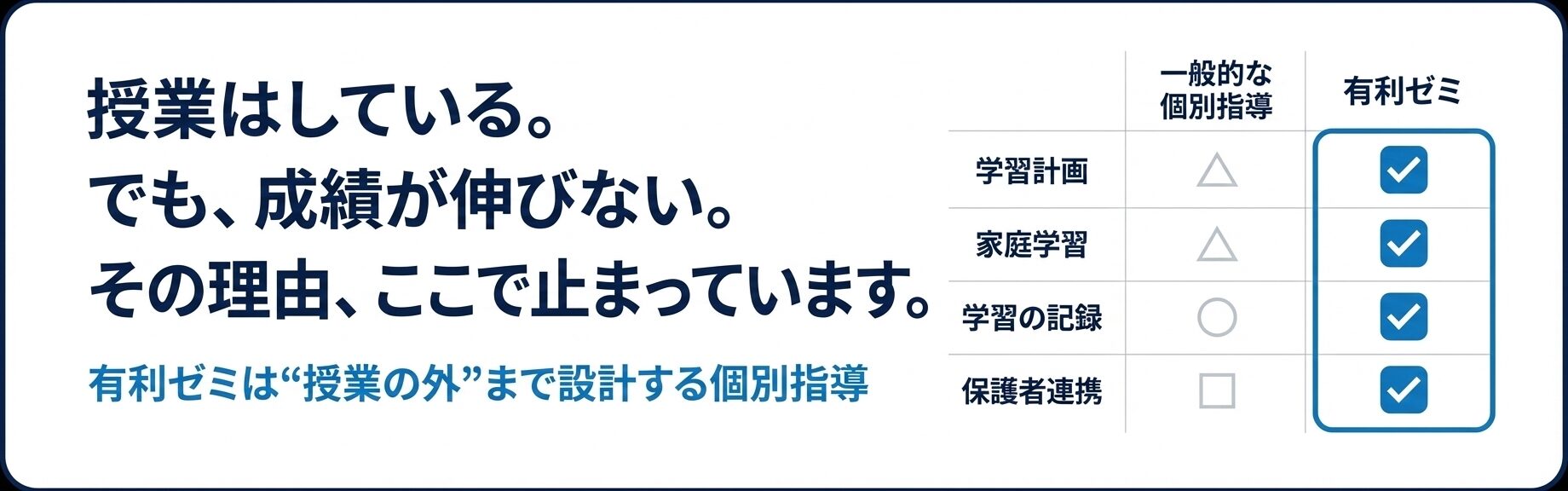 有利ゼミは広島市安芸区中野にある個別指導の学習塾です。
